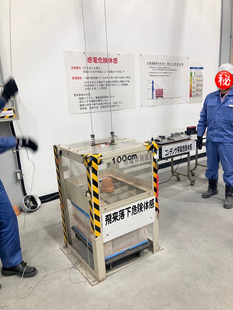 本研修では、実際の作業現場を再現した設備を用い、感電・転倒・挟まれなどの危険を“体験”しながら、安全の重要性について学ぶことができました。