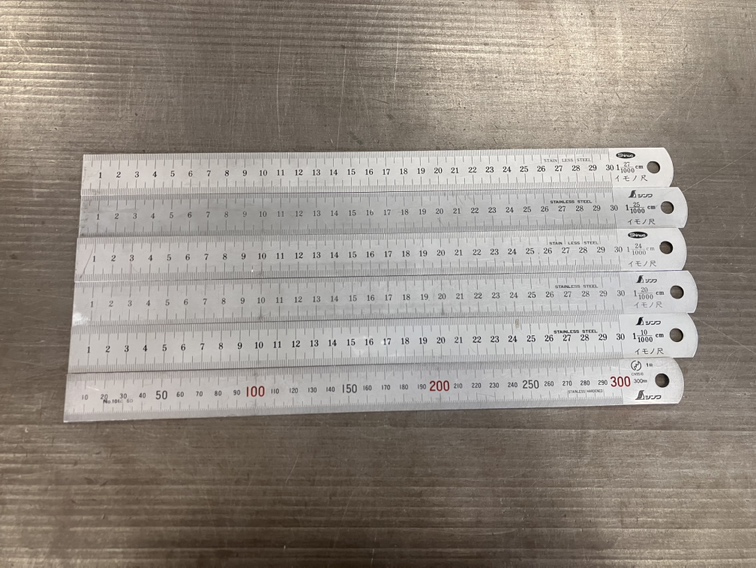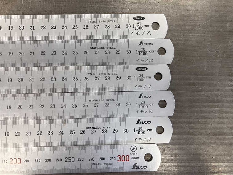 鋳物尺は、通常の物差しよりも目盛りの間隔が少し広めに作られている専用の測定具です。