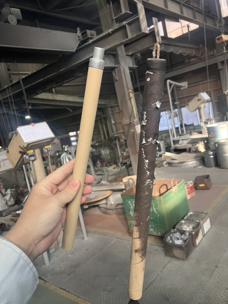 実はこれ、溶けた金属(溶湯)の温度を測るための“使い切り温度計”だったのです!!