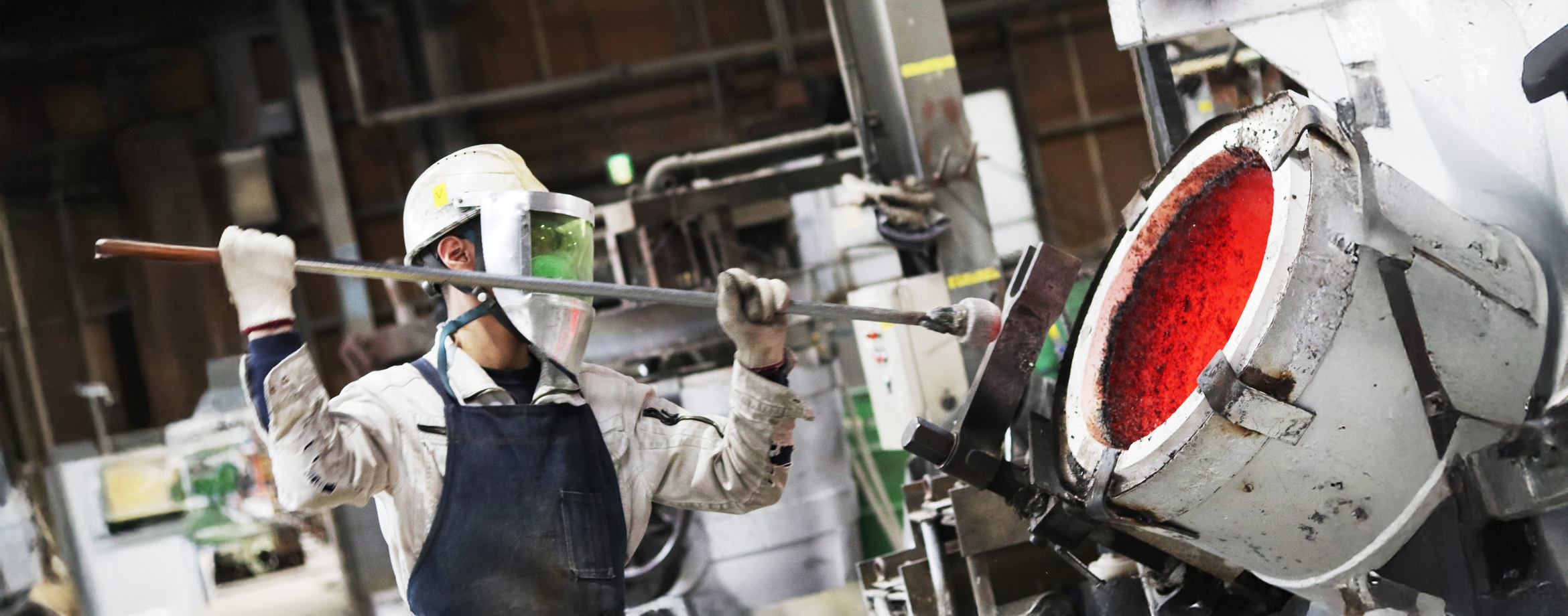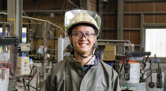 現在は溶解作業を担当しており、鉄やクロムなどの材料を計算しながら、正確な配合で溶かす工程を任されています。初めは覚えることも多く大変でしたが、先輩方の指導を受けながら一つひとつ確実に身につけてきました。最近では鋳込みで使用する取鍋(とりべ)の管理も任されるようになり、責任のある仕事を任されるやりがいを感じています。