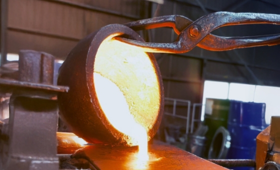 こちらは、2つの取鍋から同時に溶けた金属を注ぎ込む「2丁注ぎ」の様子を収めた動画です。